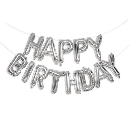 Balón, 40 cm, PUKKA PAD "Happy Birthday", strieborná