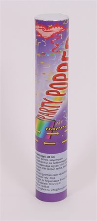 Pootočením rukoväte ( vrchnej a spodnej časti tubusu proti sebe v smere šípok ) uvolnite veľké množstvo farebných papierových obdĺžnikov a farebných fóliových serpentín vystreľujúcich do výšky 5 - 8 metrov.