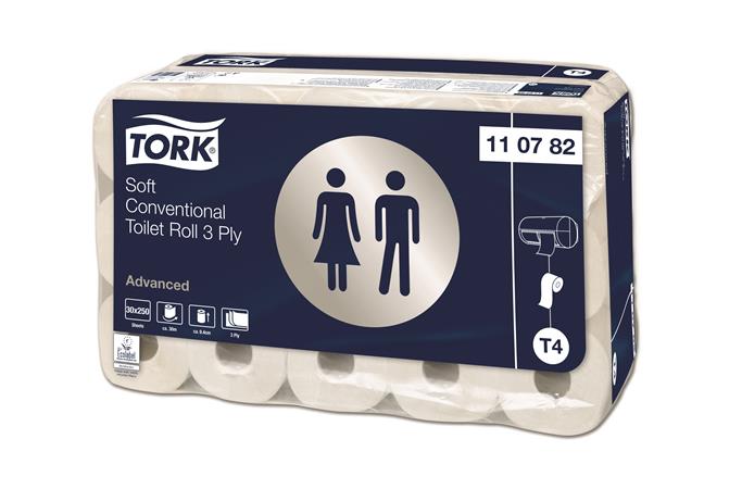 Toaletný papier, T4 systém, 3-vrstvový, priemer: 12,5 cm, Advanced, TORK, biela
