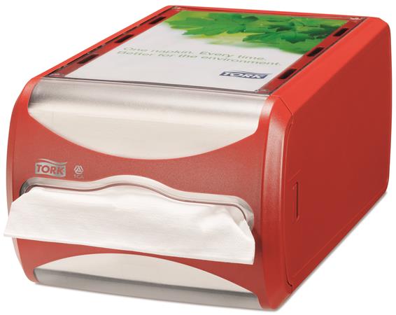 Tork Xpressnap® pultový zásobník na servítky je ideálny pre reštaurácie, ktoré ponúkajú obmedzené služby a servítky vydávajú na centrálnom mieste. Tento moderný zásobník vydáva servítky vždy po jednej, čím zlepšuje hygienu a znižuje odpad zo servítok minimálne o 43 % v porovnaní s tradičnými systémami zásobníkov servítok.