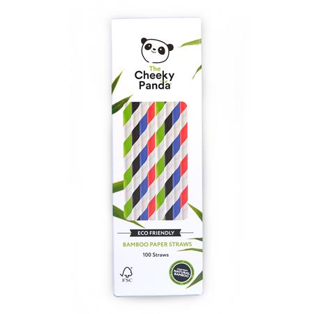 Slamka, bambusová, rovná, rozložiteľná, 100 ks, CHEEKY PANDA, mix farieb