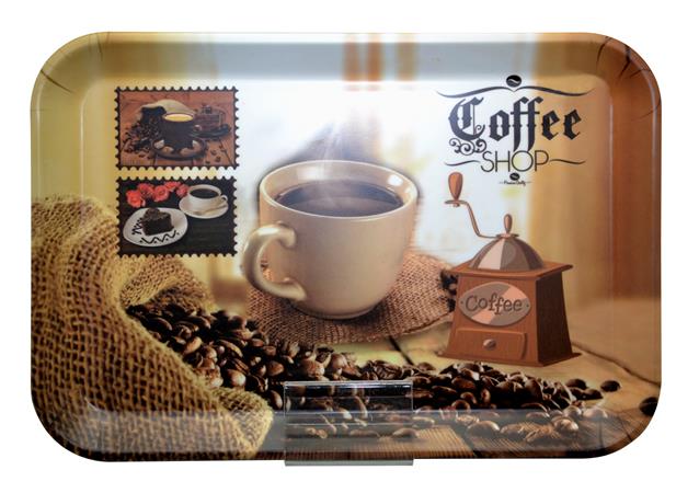 Tácka, hranatá, plastová, vzor kávy, 21x14 cm