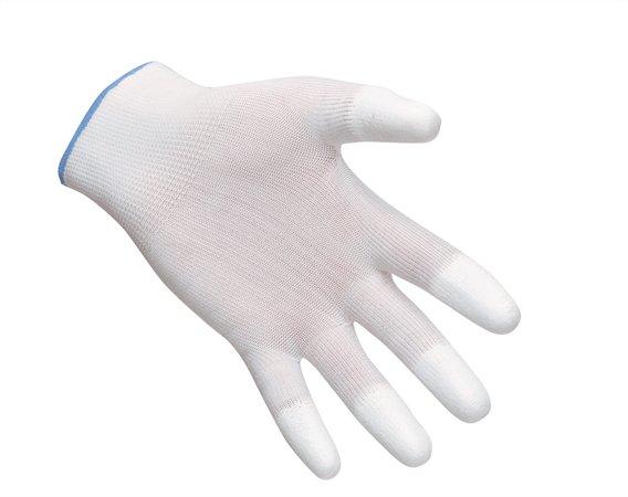 kvalitné rukavice vyvinuté pre mikroelektronický priemysel, zabezpečujú pevný a bezpečný úchyt, konce prstov máčané v polyuretáne, s pružnou manžetou, materiál: nylon, polyuretán, farba: biela