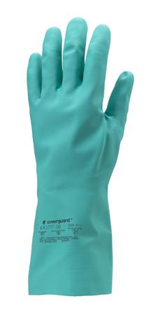 Ochranné rukavice, nitril, chemicky odolné, zdrsnený povrch, veľkosť 9/L, zelené