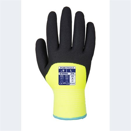 Ochranné rukavice, zimné, dvojitá podšívka, nitril, máčané, veľkosť L, žlto-čierne