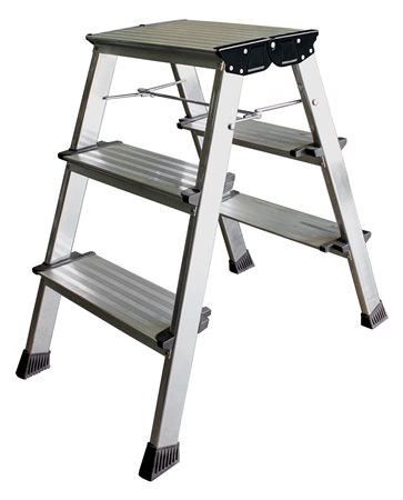 kompaktné, hliníkové schodíky, rozmery pracovnej plošiny: 420 x 250 mm, protišmykové 125 mm priečky, veľké, rebrované, protišmykové ukončenia nôh, zaberajú málo miesta, nosnosť: 150 kg