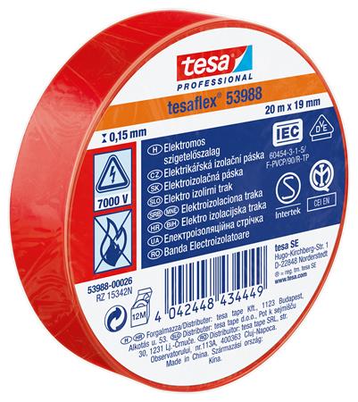 Izolačná páska, 19 mm x 20 m, TESA "Professional", červená