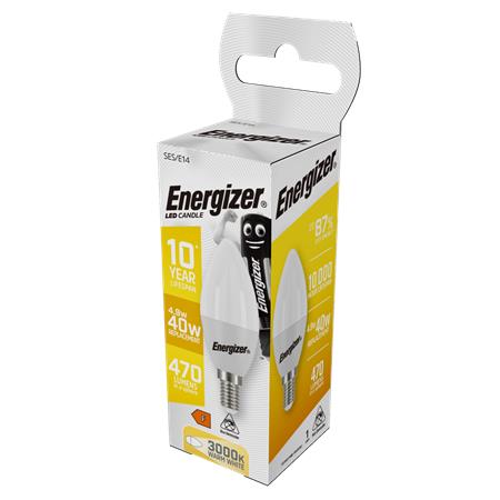 LED žiarovka, E14, sviečka, 4,9W (40W), 470lm, 3000K, ENERGIZER