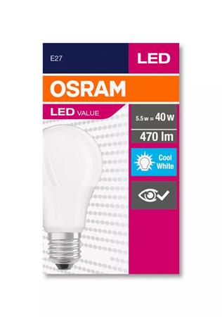 LED žiarovka, E27, guľa, A60, 5W, 470lm, 4000K (HF), OSRAM "Value"