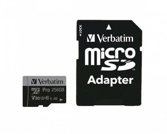 Pamäťová karta, microSDXC, 256 GB, CL10/U3/A2, 100/90 MB/s, s adaptérom, VERBATIM "PRO"