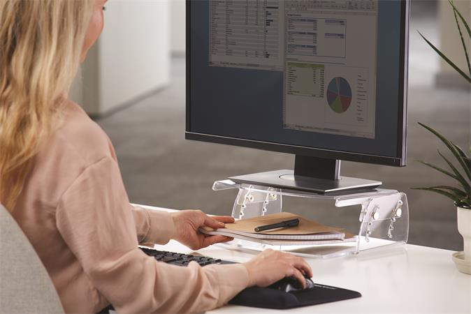 Stojan na monitory, nastaviteľný, FELLOWES "Clarity™, priesvitná