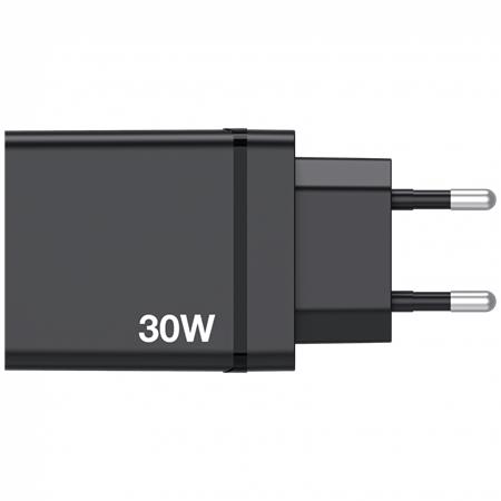 30W USB nástenná nabíjačka Verbatim kombinuje 4 porty v tenkom dizajne s EÚ zástrčkou. -podporuje súčasné nabíjanie až 4 zariadení s maximálnym celkovým výkonom 30 W -1 x USB-C® PD 3.0 až 20 W -1 x USB-A QC 3.0 až 18 W -2 x USB-A až 10 W - vyrobené z kvalitných nehorľavých materiálov -nadprúdová ochrana -prepäťová ochrana -ochrana proti skratu -ochrana proti prehriatiu -materiál: plast Teleso: PC + ABS + Ohňovzdorný materiál -rozmery: 91,2 x 45,7 x 27,5 mm ( Š x V x H) - hmotnosť: 66 g - bezplastové balenie