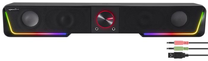 Reproduktor, 12W, 2x3.5 mm jack + USB-A, SPEEDLINK "GRAVITY RGB Stereo Soundbar", čierna