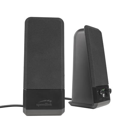 Dvojica USB reproduktorov značky Speedlink sa hodí na každý písací stôl. Úzky tvar nezaberie miesto a zachováva si špičkovú stabilitu spojenú s moderným dizajnom. Okrem regulácie hlasitosti a vypínania v jednom tlačidle je samozrejmosťou tiež 3,5 mm výstup pre slúchadlá. Hlasitosť v slúchadlách je možné ovládať priamo na reproduktore.
