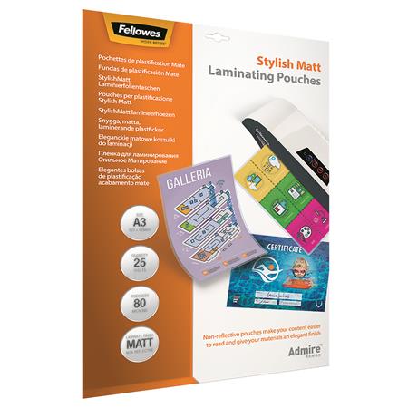 Laminovacia fólia za tepla, 80 mikr., A3, matná, 25 ks, FELLOWES "Admire Stylish"