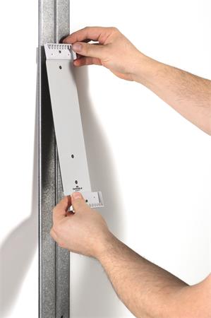 Robustný magnetický nástenný držiak z oceľového plechu s práškovým nástrekom - vďaka magnetickej zadnej časti ho možno flexibilne namontovať na kovové povrchy - kapacita: na 10 tabúľ A4 (nie sú súčasťou balenia) - panely možno jednoducho a rýchlo vymeniť - niekoľko nástenných držiakov je možné umiestniť vedľa seba