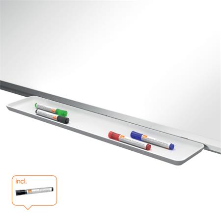systém InvisaMount uľahčuje montáž a skryje upevňovacie časti za tabulu štýlový držiak na pero s podnosom na uloženie popisovačov a utierok vysoko zmazateľný smaltovaný povrch na časté použitie