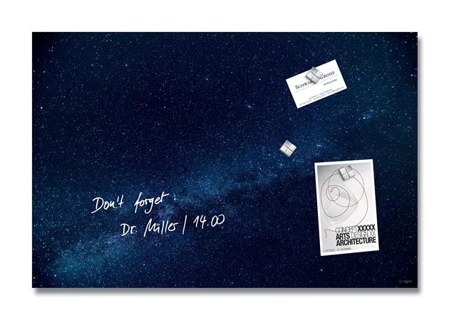 Hlavná stránkaTechnologické výrobkyPrezentáciaTabuleMagnetická sklenená tabuľa, 60x40x1,5 cm, SIGEL "Artverum® ", vzor: Galaxy