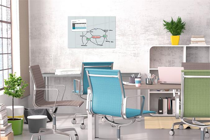 Magnetická sklenená tabuľa, 90x60 cm, BE!BOARD, biela