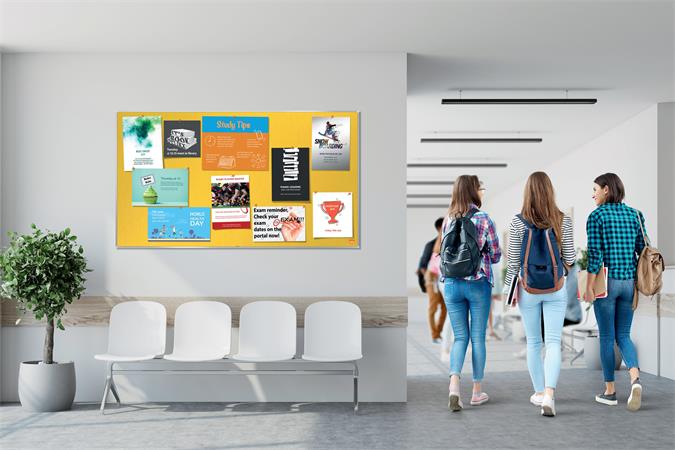 širokouhlá textilná tabuľa s moderným vzhľadom a úzkym rámom